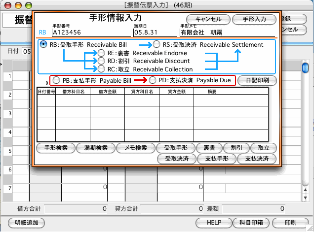 【手形番号について】........同じ番号の手形を入力した場合、手形台帳は、後から入力した仕訳に書き換えられます。