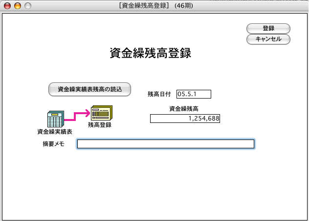 資金繰シミュレーション用[残高登録画面]