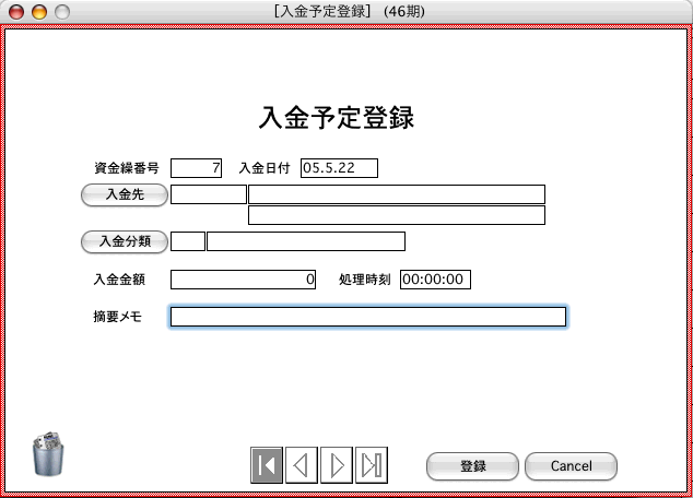 資金繰シミュレーション用[入金予定登録画面]