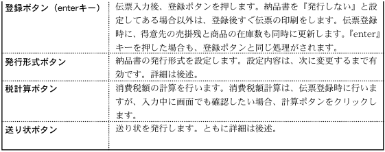 ●左端から、先頭の伝票・1枚前の伝票・1枚後の伝票・最後の伝票に移動します。これらのボタンは変更内容を登録せず、伝票の移動を行います。