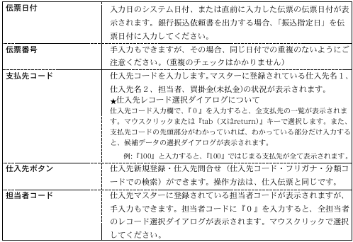 ●支払データの銀行振込依頼書を作成する場合、支払日に先がけて支払伝票を入力します。