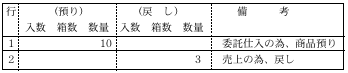 ●具体的な明細入力例。預り数に動きがあったとき、明細入力を行ないます。預り品伝票は、仕入伝票等とは連動していません。
