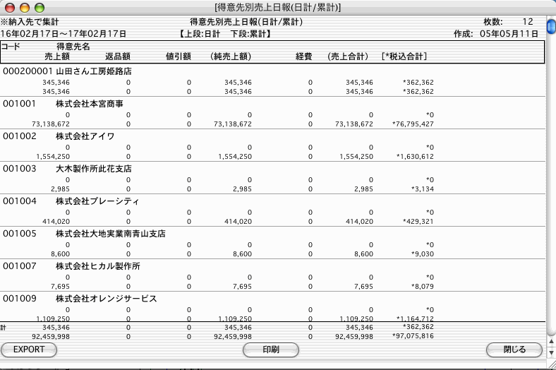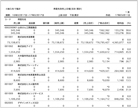 【得意先別売上日報印刷】