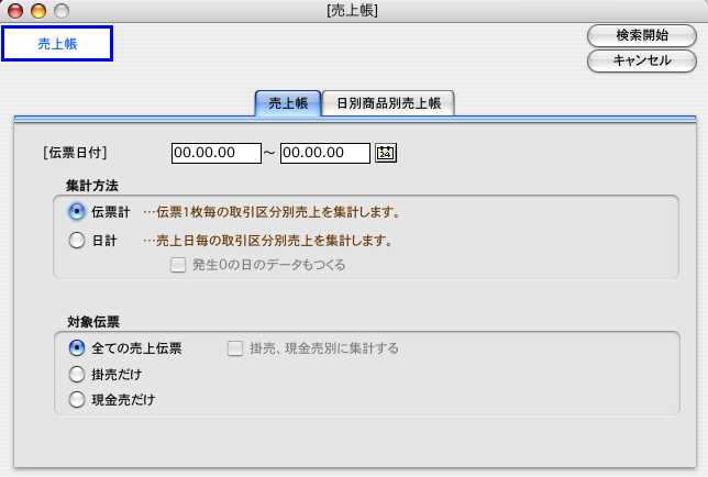掛売、現金売別に集計する…日計で、全ての売上伝票を選択した場合、掛売と現金売別に集計するか否かを選択します。