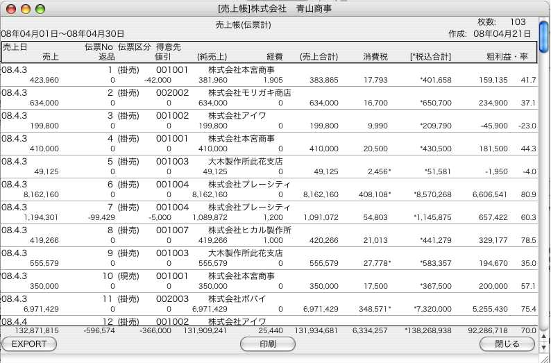 2.検索条件を全て満たした売上帳が一覧で表示されます。