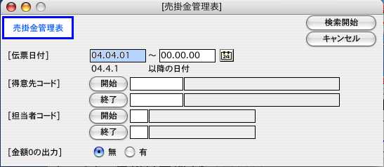 ●指定期間内の売掛金管理表を作成します。入金を区分別に集計する為、売掛金明細書や元帳の集計に比べ時間がかかります。