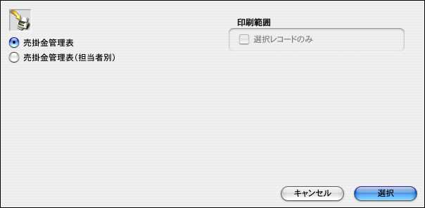 ●一覧からの印刷で、「売掛金管理表」「売掛金管理表(担当者別)」の選択ができます。