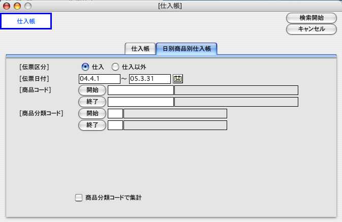 ●又、「商品分類コードで集計」にチェックすると、日別商品分類別仕入帳が一覧で表示されます。