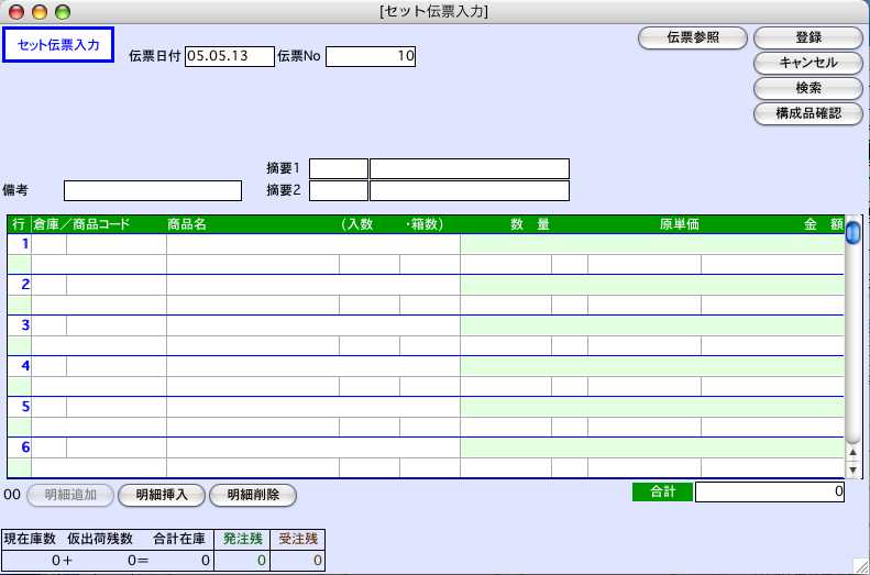 ●セット商品を作成、解除したとき、セット伝票を入力します。前もってセット商品マスターを登録しておく必要があります。