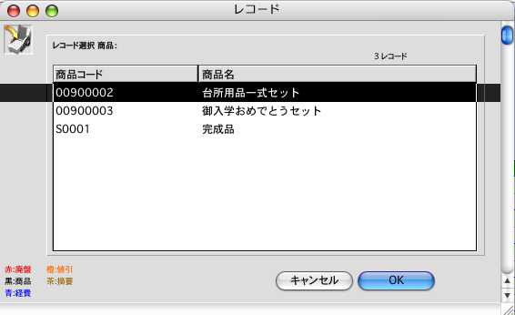 2.セット商品入力画面の明細行-商品コード入力時の商品レコード選択は、セット商品のみ表示されます。もし、全商品を表示させたい場合は、ファイルメニューの環境設定画面で、「旧レコード選択ダイアログを使う」にチェックを入れます。