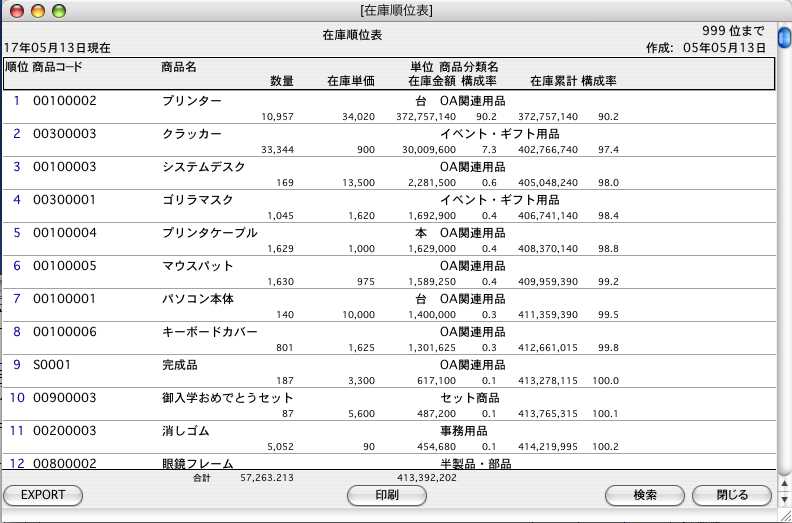 2.在庫順位表が表示されます。