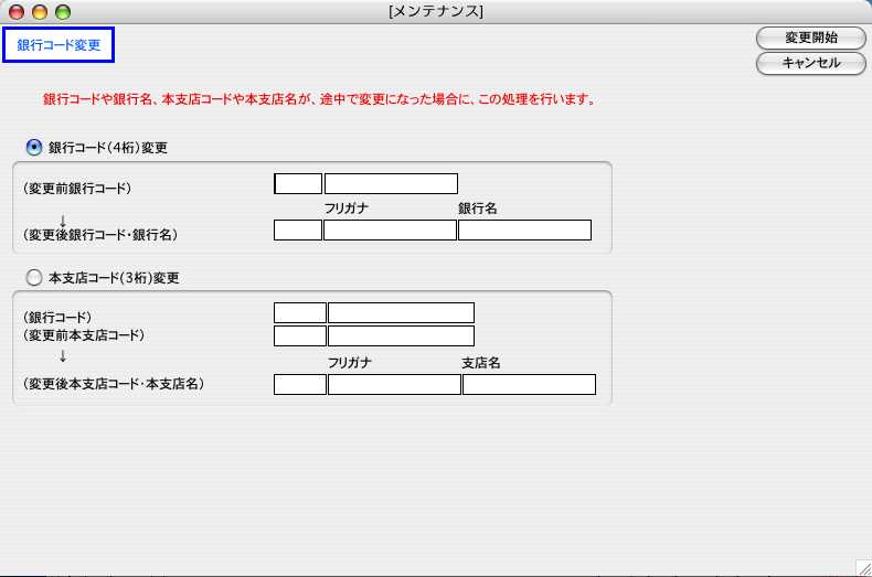 変更前の銀行コードと変更後の銀行コードを入力します。