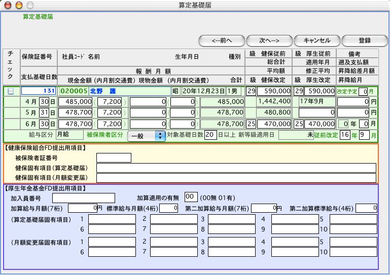 .算定基礎届データが作成され、表示されます。