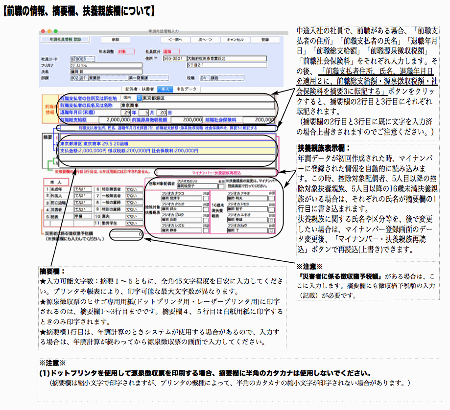 ※うち、非課税となる通勤手当...非課税調整額に通勤手当が含まれている場合に明細を入力します。源泉徴収簿に印字されます。