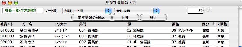 2年調社員情報検索の手順で、社員一覧を表示させます。
