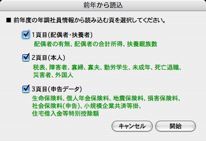 前年度の年調社員情報を、今年度に読み込みたい時使用します。年調社員情報入力画面の中の、読み込む頁をチェックして指定します。