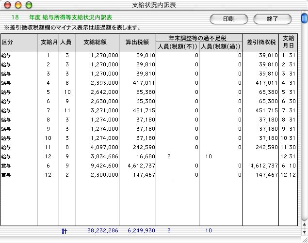 税務署に提出する「合計表」の、(5)給与所得等支給状況内訳表に相当する帳表です。