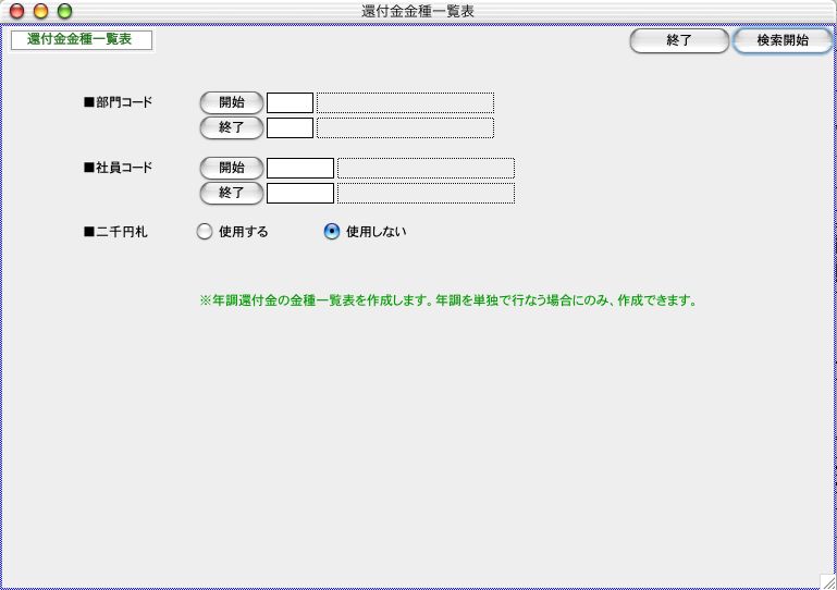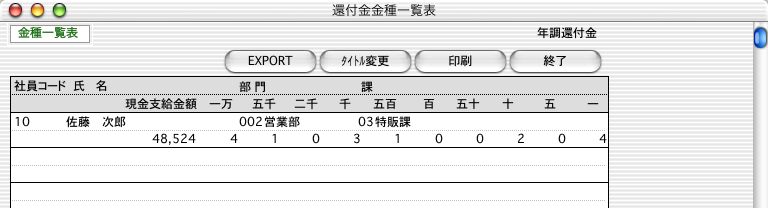 1.年調メニューから、「還付金金種一覧表」を選択します。