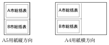 総括表1件あたりの大きさは、A6横長です。印刷するときの用紙は、A5(縦方向、A5用紙1枚に、2件の総括表が印刷されます。)または、A4(横方向、A4用紙1枚の左半分のみを使用し、2件の総括表が印刷されます。)を使用します。