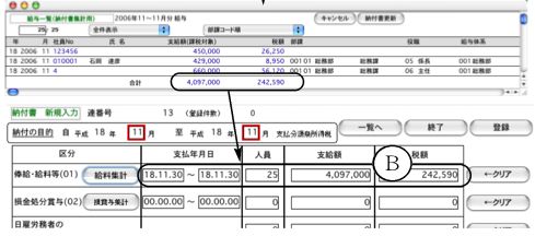毎回、社員の給与・賞与から控除している、源泉所得税を、税務署に納付する際に記入する、「納付書」の金額を集計する機能です。