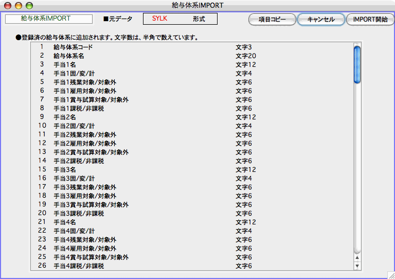 2.給与体系IMPORTの項目一覧が表示されます。