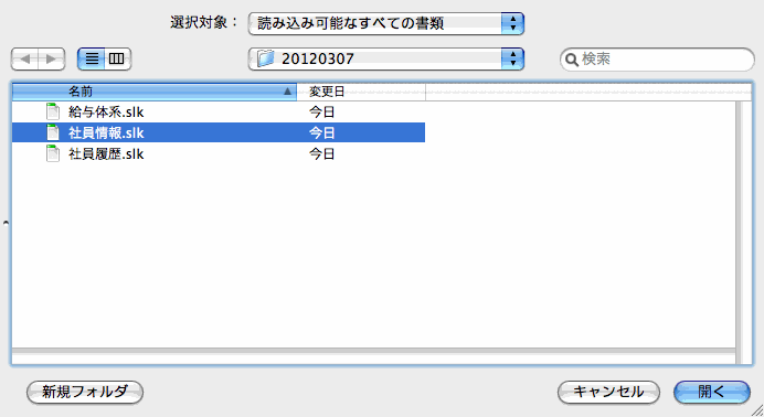 3.社員情報のIMPORT元データのファイルを選択し開きます。
