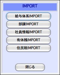 1.その他メニューから、「IMPORT...」を選択して、選択画面を表示させ、「住民税IMPORT」ボタンをクリックします。