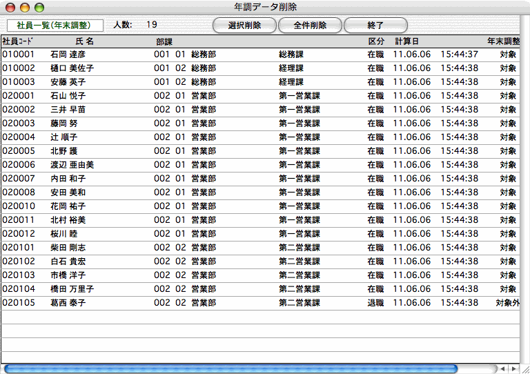 2.年調データの社員一覧が表示されます。
