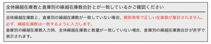 *「A.繰越在庫数(全体繰越在庫数)」=倉庫別在庫の合計繰越在庫数が一致した状態でスタートします。