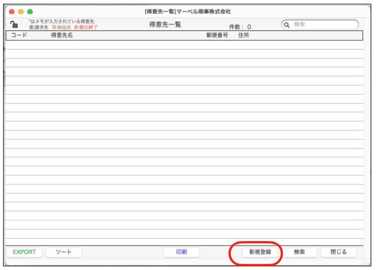 ●得意先一覧の「新規登録」ボタンをクリックします。