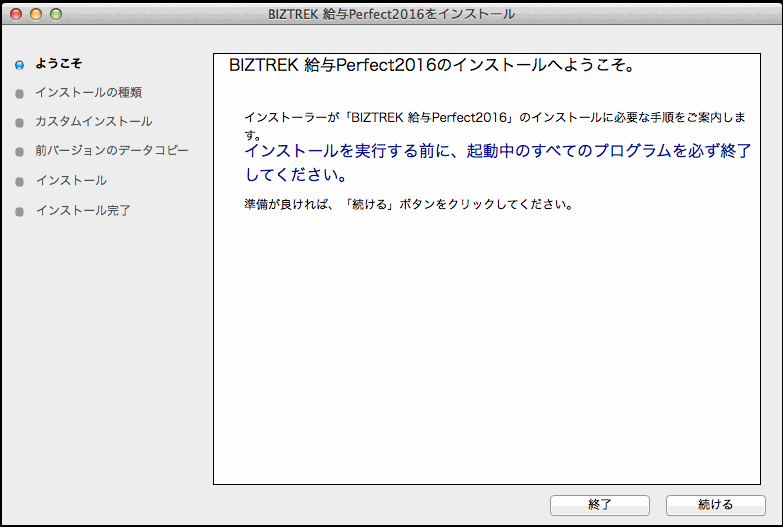 ・Mac版 「BIZTREK 給与Perfect2016」の文字をクリックします。