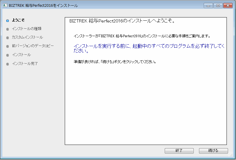 ・Windows版 「BIZTREK 給与Perfect2016」の文字をクリックします。