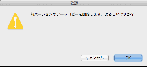 ◎「2)データのコピーをする」を選択した場合、下図ウィンドウが表示されますので、「OK」ボタンをクリックします。