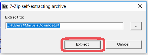 3. 次に、圧縮ファイルの解凍場所を指定するウィンドウが開きますので、そのまま「Extract」ボタンをクリックします。