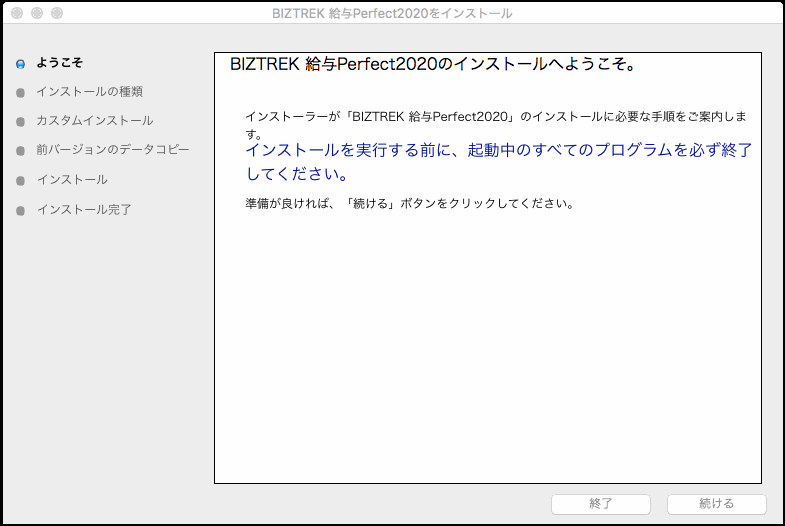 ・Mac版 「BIZTREK 給与Perfect2020」の文字をクリックします。