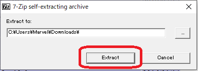 3. 次に、圧縮ファイルの解凍場所を指定するウィンドウが開きますので、そのまま「Extract」ボタンをクリックします。