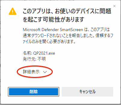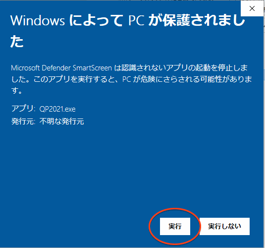 下図のウィンドウが表示されましたら、「詳細情報」ボタン→「実行」ボタンの順にクリックします。