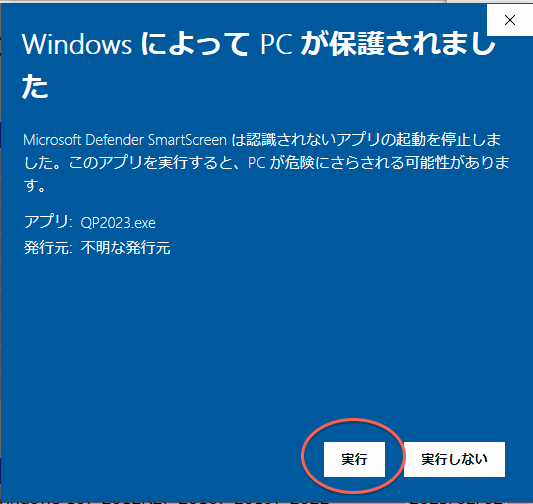 下図のウィンドウが表示されましたら、「詳細情報」→=「実行」ボタンの順にクリックします。