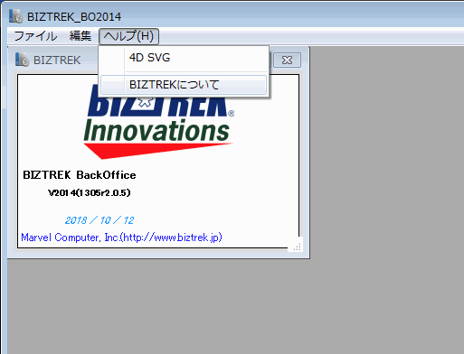 (詳しいバージョンは「ヘルプ」メニューの「 BIZTREKについて」を選択します)