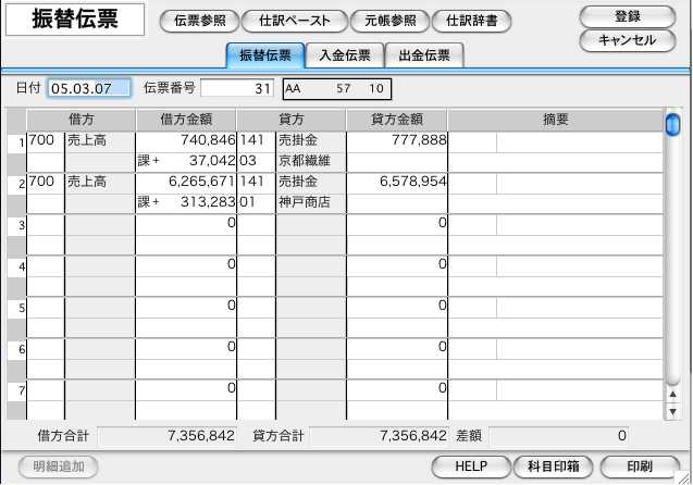 後は、通常の伝票登録と同じ処理をします。
