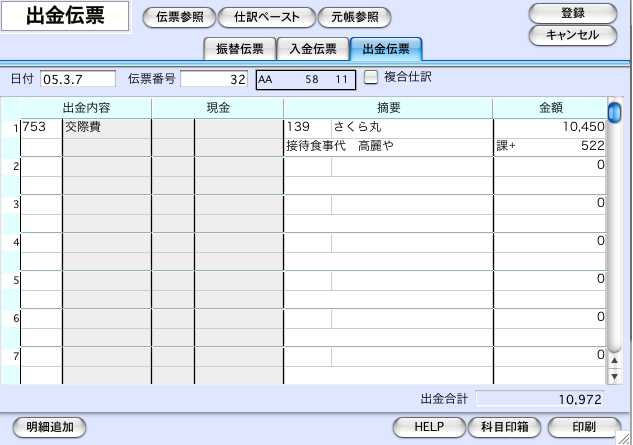 「出金伝票」「入金伝票」画面から振替伝票入力画面に戻ることも自由です。