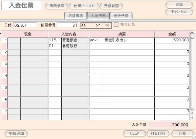 また、入金・出金の仕訳は振替伝票入力でも処理できます。