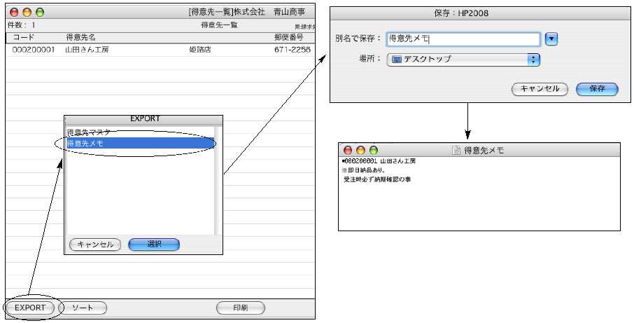 登録した得意先メモをTEXT形式にEXPORTする事ができます。