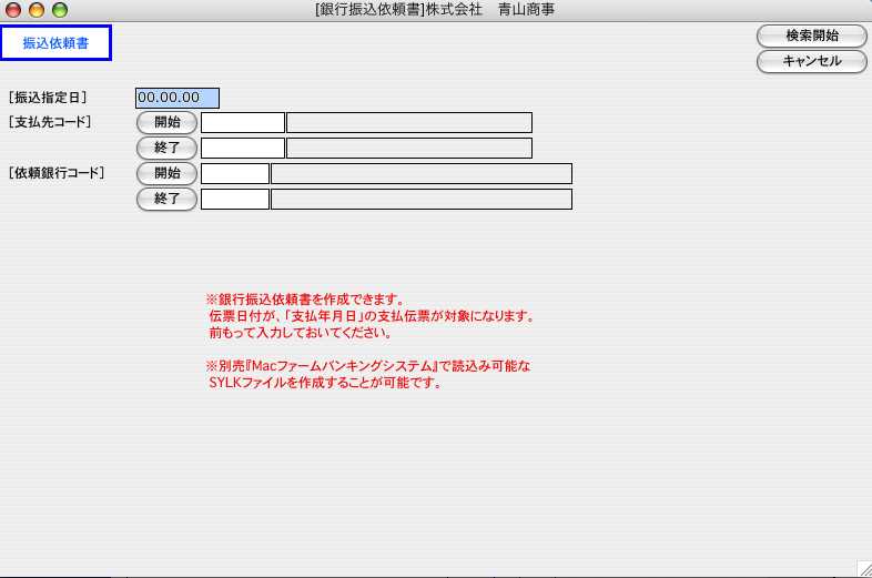 ●銀行振込で支払いを行なう場合、銀行振込依頼書を作成できます。銀行への提出日に間に合うように、前もって、支払伝票を入力してください。