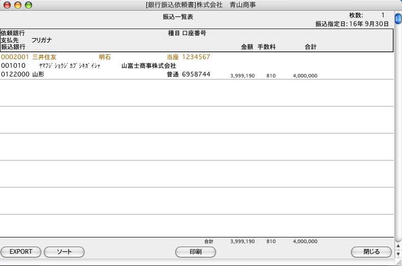 1.「振込指定日」と、支払伝票の「伝票日付」が一致しているデータの振込依頼書が作成されます。