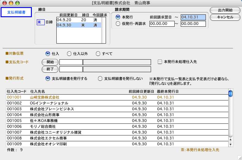 『本発行』は何度行なってもかまいませんし、『販売仕入スタンダードPRO』以外の方法で支払明細書を発行する場合は『本発行』を省略してもかまいません。ただし、『本発行』を省略した仕入先は、支払一覧表・支払予定表には出力されません
