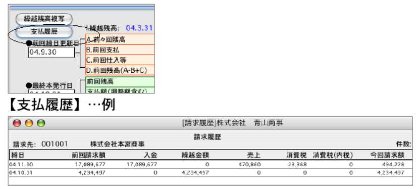書き込まれたデータは締日更新を行った時点で、『支払履歴』の中に移行され履歴としていつでも見る事ができます。