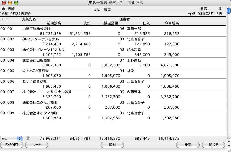 ●支払明細書『本発行』時の精算金額の一覧表です。『本発行』が済んでいる仕入先のみ出力します。