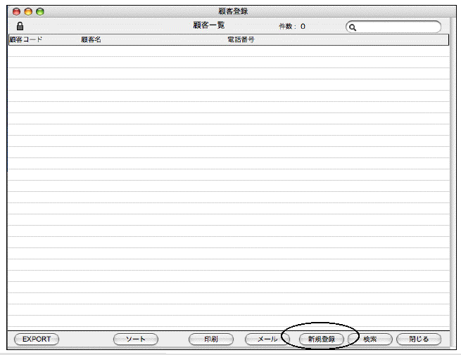 1.顧客一覧画面の「新規登録」ボタンをクリックします。