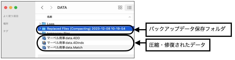 圧縮・修復の操作前に、選択されたデータファイルが自動で、バックアップコピーされます。